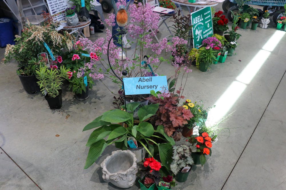 Plants are displayed for sale at the Monroe County Master Gardeners Association Garden Fair on April 11, 2026, at Switchyard Park in Bloomington. The plants were sold by Abell Nursery and Landscaping. Alissa Angel