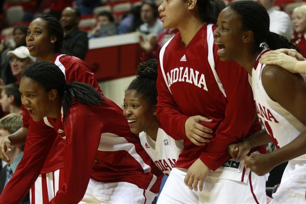 The IU bench erupts after a free throw puts them ahead of Wisconsin with just seconds remaining during their 62-60 win Thursday at Assembly Hall. Mark Felix