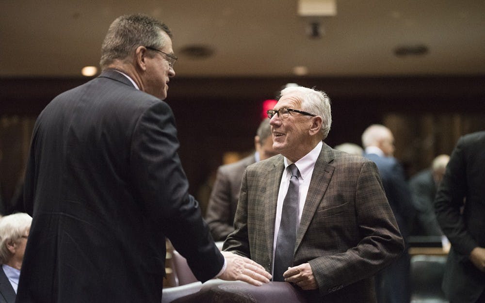 State legislators greet each other before the State of the State in Indianapolis Tuesday night. Governer Holcomb discussed issues of educational funding and infrastructure at the address. Rose Bythrow and Rose Bythrow and Rose Bythrow