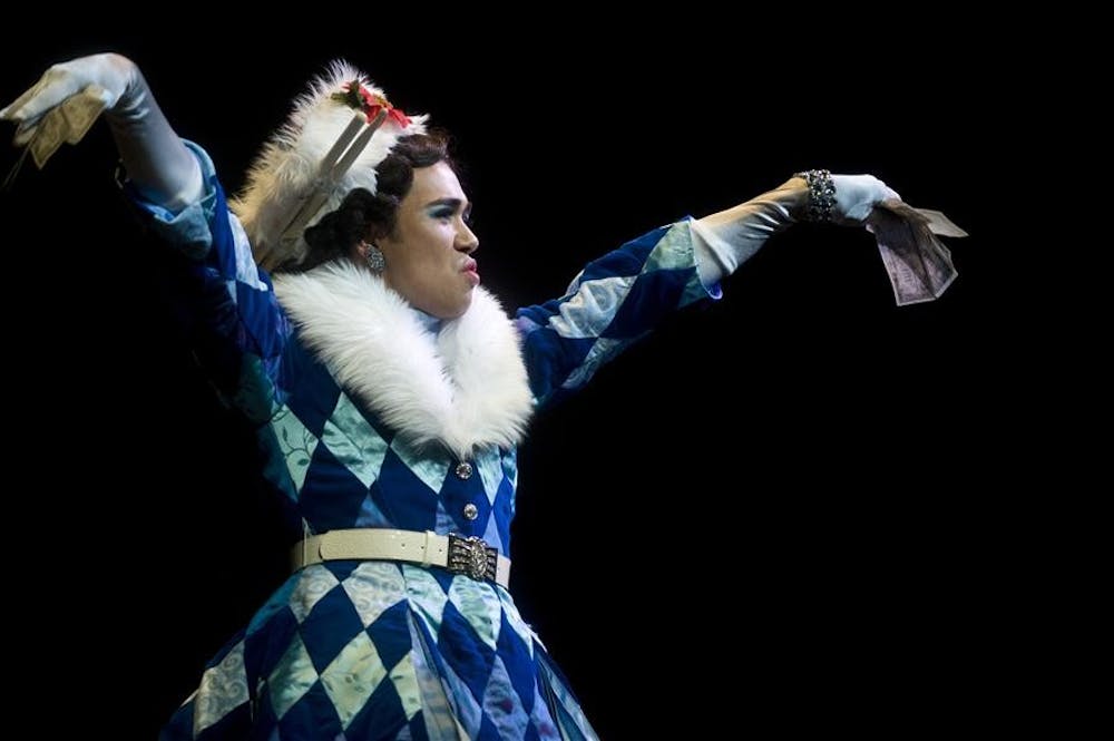 Junior Cosmo Clemens, playing Angel, performs during a dress rehearsal of RENT on Monday at the Ruth N. Halls Theatre. Peter Stevenson