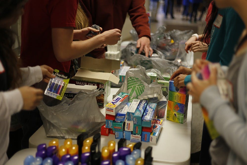 IU students put together care packages filled with hand sanitizer, waterbottles, and chapstick. The care packages will be passed out the morning after the homeless have spent the night in the church.