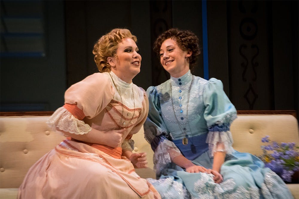 Shannon Love, left, and Rachel Mikol perfom a duet during the Cosi fan Tutte rehearsal Monday at the MAC. Written by Mozart, the Italian opera tells a story of fidelity between two couples. Levi Reece and Levi Reece