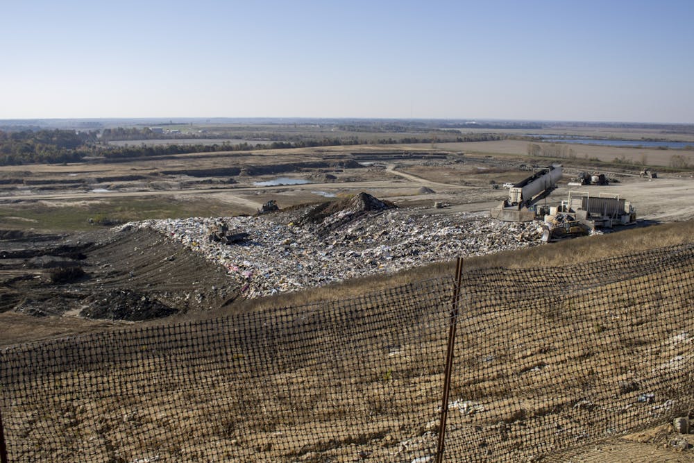 The Republic Services Sycamore Ridge Landfill in Pimento, Indiana, landfill workers use dozers to build the waste up into a large pile Nov. 5, 2021. Underneath the waste, there is a layer of thick black material and clay to prevent leakage into the ground.