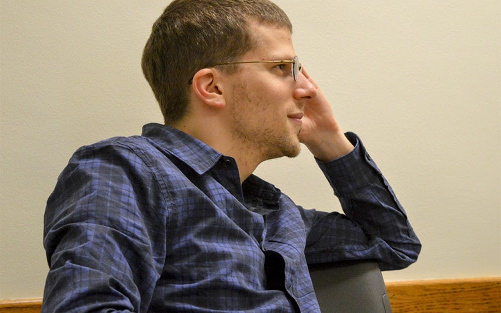 Jesse Eisenberg speaks on the effects of domestic abuse throughout Bloomington Monday evening during his Q&A screening at Woodburn Hall. Eisenberg, who has just completed his “I’m with Jesse” campus campaign, has brought widespread attention to the local non profit “Middle Way House” and commented that the dedication of IU students was a major inspiration for him.