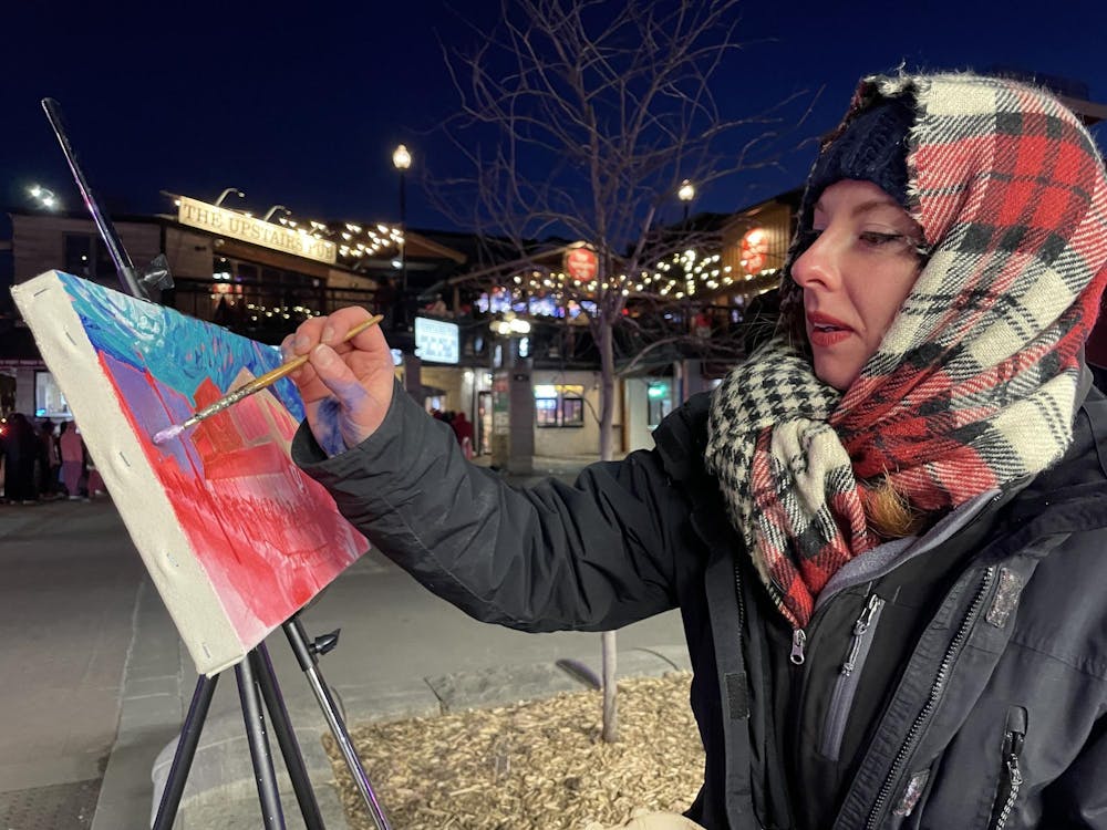 Bridget O'Brien paints Kilroy's on Kirkwood on Jan. 19, 2026, in Bloomington. O'Brien, a Master of Fine Arts student, started the impromptu project after she couldn’t get into the bars.