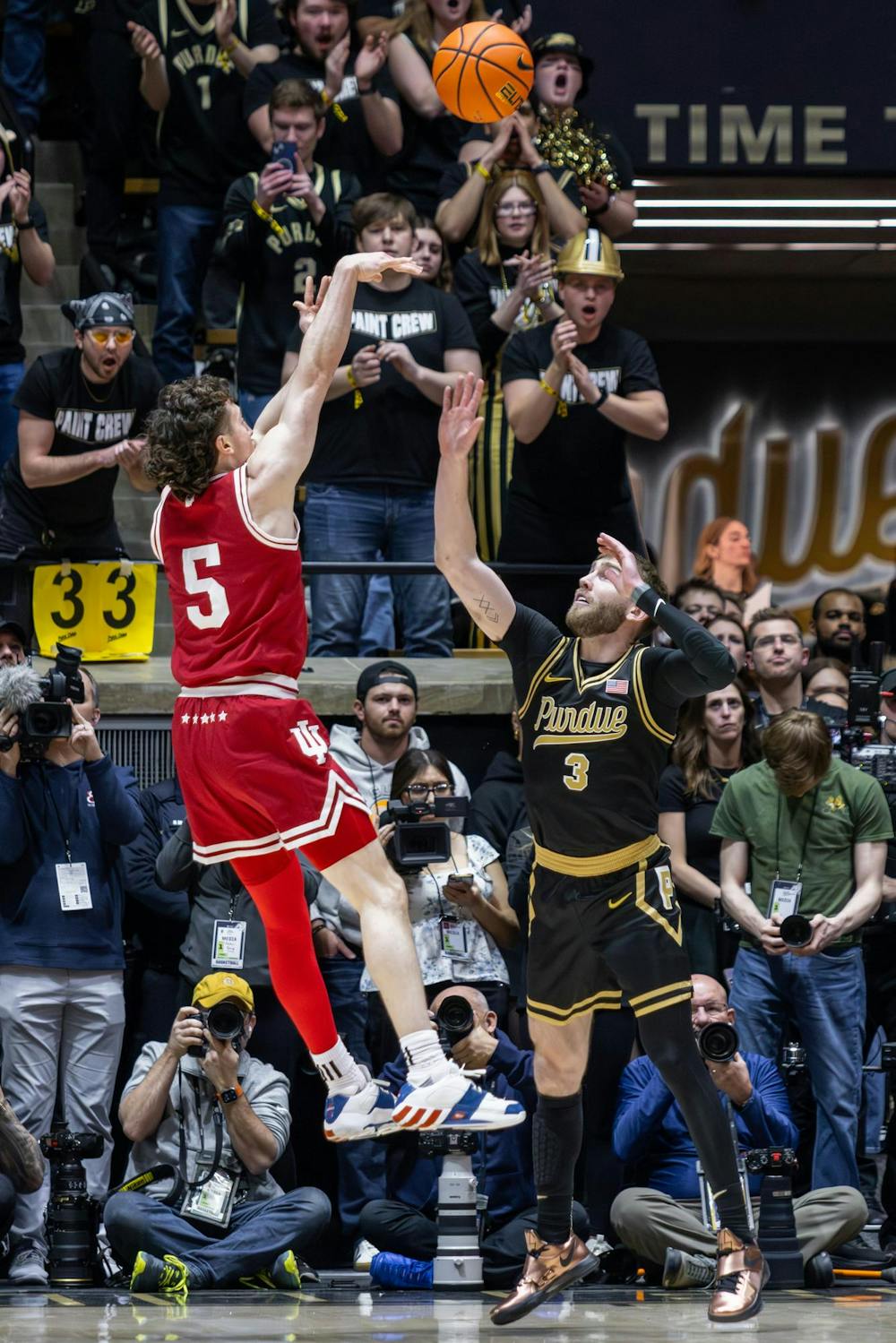 Redshirt senior guard Conor Enright shoots a basket during the game against Purdue on Feb. 20, 2026, at Mackey Arena in West Lafayette, Indiana. Enright scored three points. Briana Pace