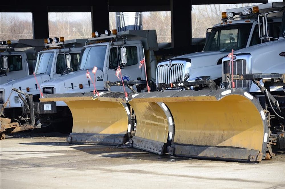 A line of snow plows rests inside a shelter Monday afternoon at Bloomington City Utilities Department Michael Majchrowicz