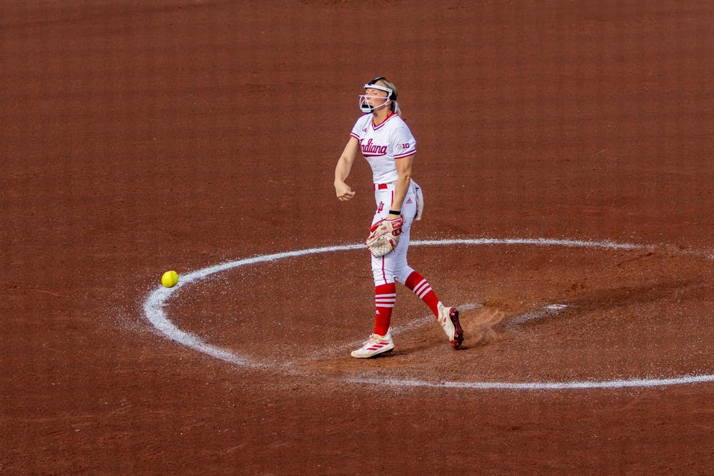 Sophomore pitcher Ella Troutt throws the ball during the game against Loyola Chicago on Mar. 10, 2026, at Andy Mohr Field in Bloomington. Troutt threw her first shutout game prior to the matchup against Loyola Chicago.