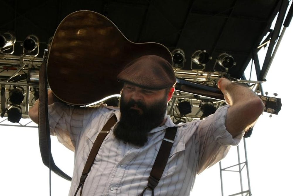 Reverend Peyton of The Reverend Peyton's Big Damn Band plays a guitar solo behind his head on Friday at Rib America Festival in Indianapolis. Mark Felix