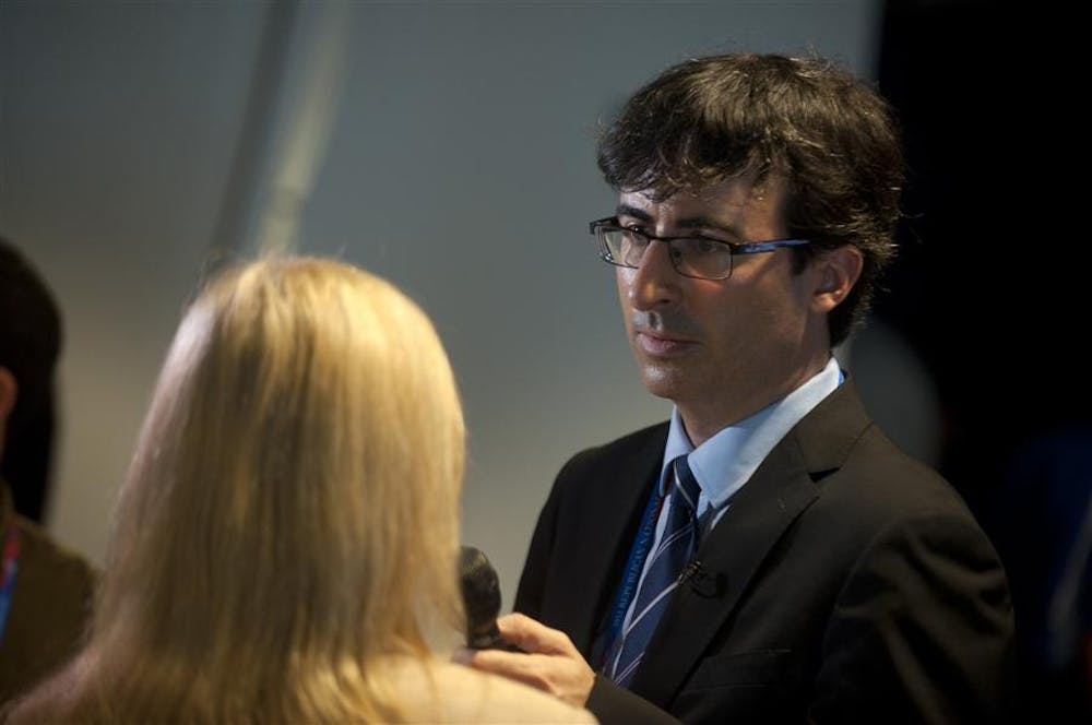 John Oliver of the Daily Show interviews a RepublicanTuesday at the Republican National Convention in Tampa, Fla. Mark Felix