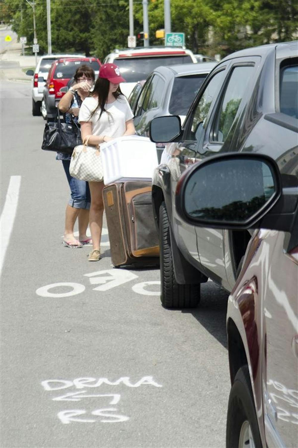Freshman Hali Ross and mother Bev Ross move in Tuesday at Briscoe Residence Center. The official move-in day is Wednesday, but the dorms opened Sunday for early move-in. Rabi Abonour