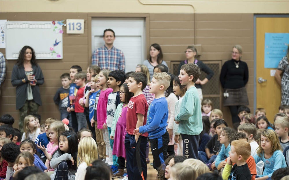 Kindergarden, first and second graders perform songs for Martin Luther King Day. The students at Rogers Elementary honored members of the community for their service Thursday night.