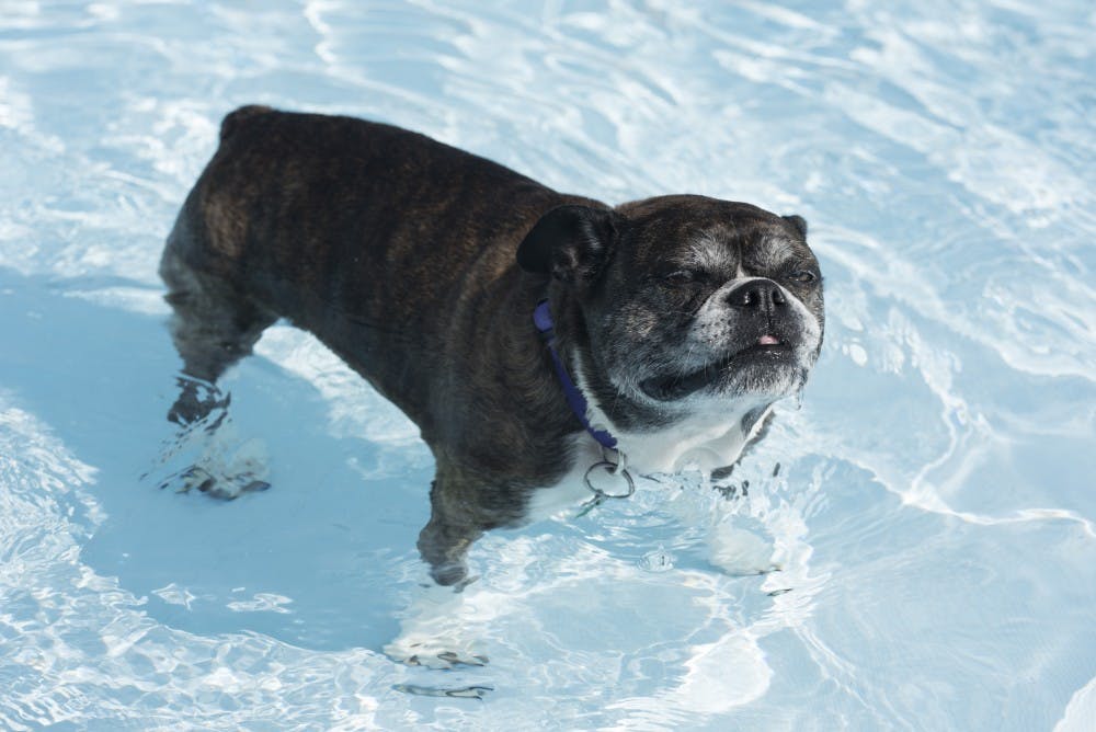 Although many dogs were jumping and swimming in the pool, some were content with sitting in the shallow end. The event Wednesday at the Mills Pool was open to all well-behaved dogs with up-to-date shot records. Rose Bythrow