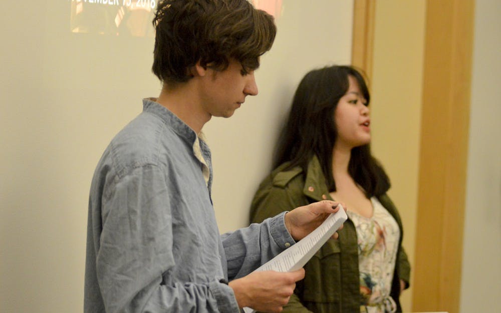 Sophomore Jacob Mills and SASV Outreach Chair Graduate Student Melissa Sokolski discuss the Students Against State Violence Constitution, Committees, and Membership during their Spring Mass Callout Meeting Sunday evening in the Neal Marshall Black Culture Center’s Bridgewater Lounge. Abolishing police departments such as the IUPD and restructuring general education requirements were primary focal points in the groups demands.