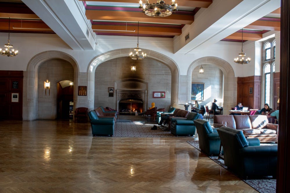 Students study in the South Lounge. The lounge is one of the oldest parts of the Indiana Memorial Union. Emily Putman