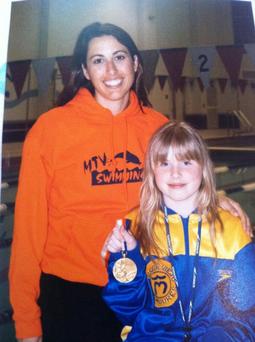 Lilly King holds an award standing with four-time Olympic gold medalist Janet Evans. Courtesy Photo