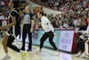 Head coach Teri Moren yells in the game against Purdue on Feb. 8, 2026, at Simon Skjodt Assembly Hall in Bloomington. Indiana won the game 74-59.