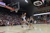 Senior guard Shay Ciezki shoots the ball in the game against Purdue on Feb. 8, 2026, at Simon Skjodt Assembly Hall in Bloomington. Ciezki played 40 minutes in the game.