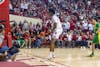 Freshman guard Nevaeh Caffey attacks the basket against Purdue on Feb. 8, 2026, at Simon Skjodt Assembly Hall in Bloomington. The Hoosiers defeated the Boilermakers 74-59 Sunday.