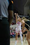 Redshirt sophomore guard Lenée Beaumont takes a free throw in the game against Purdue on Feb. 8, 2026, at Simon Skjodt Assembly Hall in Bloomington. Beaumont made 4 of 6 free throws.
