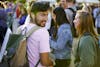Junior Luis Garcia waits with friends in line for food during the First Thursdays event Thursday evening in the Fine Arts Plaza. The monthly festival aims to bring the community together with live music, food and the arts.