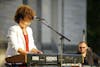 IU students and Bloomington residents watch and dance to the music as the Jenn Cristy Band closes the show during the First Thursdays event Thursday evening in the Fine Arts Plaza. The monthly festival aims to bring the community together with live music, food and the arts.
