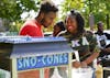 IU National Pan-Hellenic Council members make popcorn and snow cones during the NPHC fair held Saturday afternoon in Dunn Meadow. Members from various NPHC chapters came together to celebrate and reach new students interested in joining greek life.