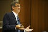 Pulitzer Prize-winning journalist Edward Humes delivers a presentation on the negative impact of cars in today’s society Monday evening at the Kelley School of Business. Humes encouraged students to rethink transportation and evaluate the effects of carbon emissions on health and environment.