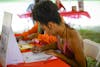 Sophomore Jada Lucas colors at the coloring table at the second annual Quarry Festival of Books on Saturday afternoon in Dunn Meadow. The event was co-hosted by the Indiana University Press, Bloom Magazine, WFIU and WTIU and featured giveaways and discounts on books from various authors.