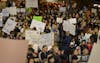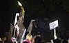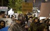 Thousands of protestors take to the streets of Indianapolis in a march against the presidential victory of Donald Trump during the Trump Resistance Rally Saturday evening at the Indiana State House in Indianapolis.