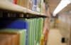 A small shelf of books sit on the first floor of the Fine Arts Library located within the Eskenazi Art Museum as the branch prepares to close its doors.
