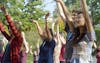 IU Students dance to Andy Grammer’s “Keep Your Head Up” during the flash mob Tuesday afternoon in the Fine Arts Plaza. The short dance caught the attention of many students and Bloomington residents as many arrived to the plaza early to see the performance.