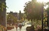 Students prepare to exit campus as the sun begins to set on Indiana University's Sample Gates. The gates seperate Kirkwood Avenue from IUs "Old Crescent" area and serve as the univeristy's most photographed structure on campus.