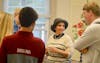 Elementary Arabic Professor Iman Alramadan has fun with her students after the Cooking Demonstration Friday evening at the Asian Culture Center. The event was hosted by Alramadan and her Elementary Arabic class was invited to enjoy some of her international cuisine.
