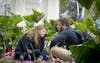 IU Students Leah Allsion and Brandon Myers conversate at Showalter Fountain and enjoy the cool fall breeze as the seasons start to shift in Bloomington.