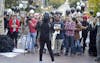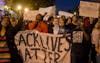 Protesters march to the Bloomington Police Department during the Black Lives Matter protest Monday evening from the sample gates. The event, hosted by Students Against State Violence and the Black Student Union, targeted the Bloomington Police Department because of their failure to bring justice in the 2015 case of Joseph Smedley.