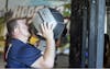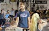 Bloomington Police Department officer Chris Brummet engages in a crossfit wall ball excercise during the crossfit with a cop event Saturday evening at Hoosier Crossfit. Officers from both the Bloomington Police Department and the Indiana University Police Department came out to bond with citizens and IU students through intensive crossfit exercises.