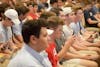 Freshmen prepare to register for fraternity rush during the Greek Orientation Seminar Tuesday evening at Alumni Hall. Hopeful first year students were informed on house tours, rush dues, and were told to beware of “fake” fraternities recruiting on campus such as the now infamous Alpha Tau Omega.