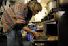 Warm air surrounds Marina Ballor as she lifts savory quiche out of her oven.