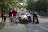 A car was hit by a bicyclist Sunday at the intersection of Seventh Street and North Jordan Avenue. The bicyclist was wearing a bike helmet, which likely prevented any serious injuries from occurring.