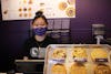 IU sophomore Hannah Lim works behind the counter at Insomnia Cookies on Saturday. The store opened March 1, but celebrated its grand opening Saturday offering special deals.