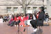 Ball State sophomore Feona Dabson sings "Blessings" by Laura Story at the Sit-In for Myanmar on Saturday outside of Sample Gates. Crowds of protesters participated in the sit-in organized by the Myanmar Student Association at Indiana University , MSA, and the Free Myanmar Campaign USA, FMCUSA, to bring attention to the military coup that occurred in Myanmar on Feb. 1.