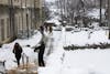 Nick's English Hut General Manager Pete Mikolaitis shovels snow from the sidewalk Monday on Kirkwood Avenue. Bloomington is expected to receive as much as a foot of snow between Monday afternoon and Tuesday morning.