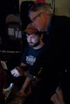 Democratic Mayoral Primary candidate John Hamilton watches the results come in with his campaign director Thomas Cook at his election day party Tuesday at Max's Place. Hamilton lost in the primaries to Mark Kruzan.