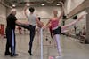 Ballet students leap into the air while practicing Tuesday at the Music Arts Center.