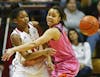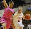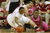 Junior small forward Aulani Sinclair loses her grip on the ball as she drives towards the basket during IU's 61-60 loss to Illinois on Sunday at Assembly Hall.