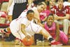 Senior guard Alisha Goodwin dives after a ball during IU's 61-60 loss to Illinois on Sunday at Assembly Hall.