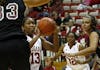 IU junior guard Jasmine McGhee pushes the ball up the floor after a steal Tuesday at Assembly Hall.