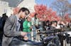 Freshman Mark Edlin drums along with his band The Underhills on Saturday at Nutella Fest outside the Collins Learning Living Community.