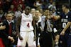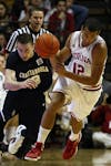 Then-senior guard Verdell Jones motions for a teammate to set a screen in the game against University of Indianapolis at Assembly Hall.